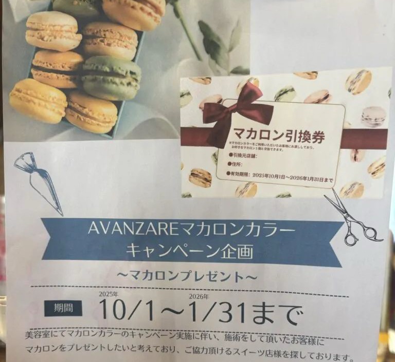 施術いただいていた方にお渡ししたマカロンの引換券は、引換期間が1月末までとなっております^ ^