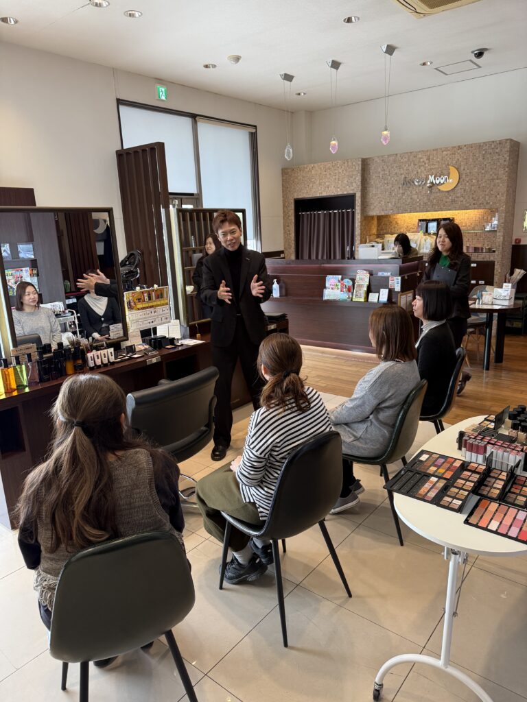 ビューティーイベント開催! Published 2025年11月9日 11月5日にビューティーイベントを開催しました!シュウウエムラの杉本さん、自由ヶ丘クリニックさんにご協力して頂き、初めての試みでスタッフ一同緊張していましたが、ご予約満席、ご好評にて無事に終えることができました!ご来店頂いたお客様も本当にありがとうございました! Published in 未分類 Previous Post マカロンカラーキャンペーン!バジルショコラカラー Next Post マカロンカラーキャンペーン!アプリコットピーチカラー