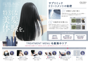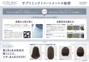 特におすすめなのが、サブリミックトリートメント。髪のデトックス、ゆがみ補正、栄養補給、コーティングまでを行うトリートメントでまとまりにくさ、パサつき、ダメージ、湿気による広がりが気になる方に向いています。詳しくはこちら